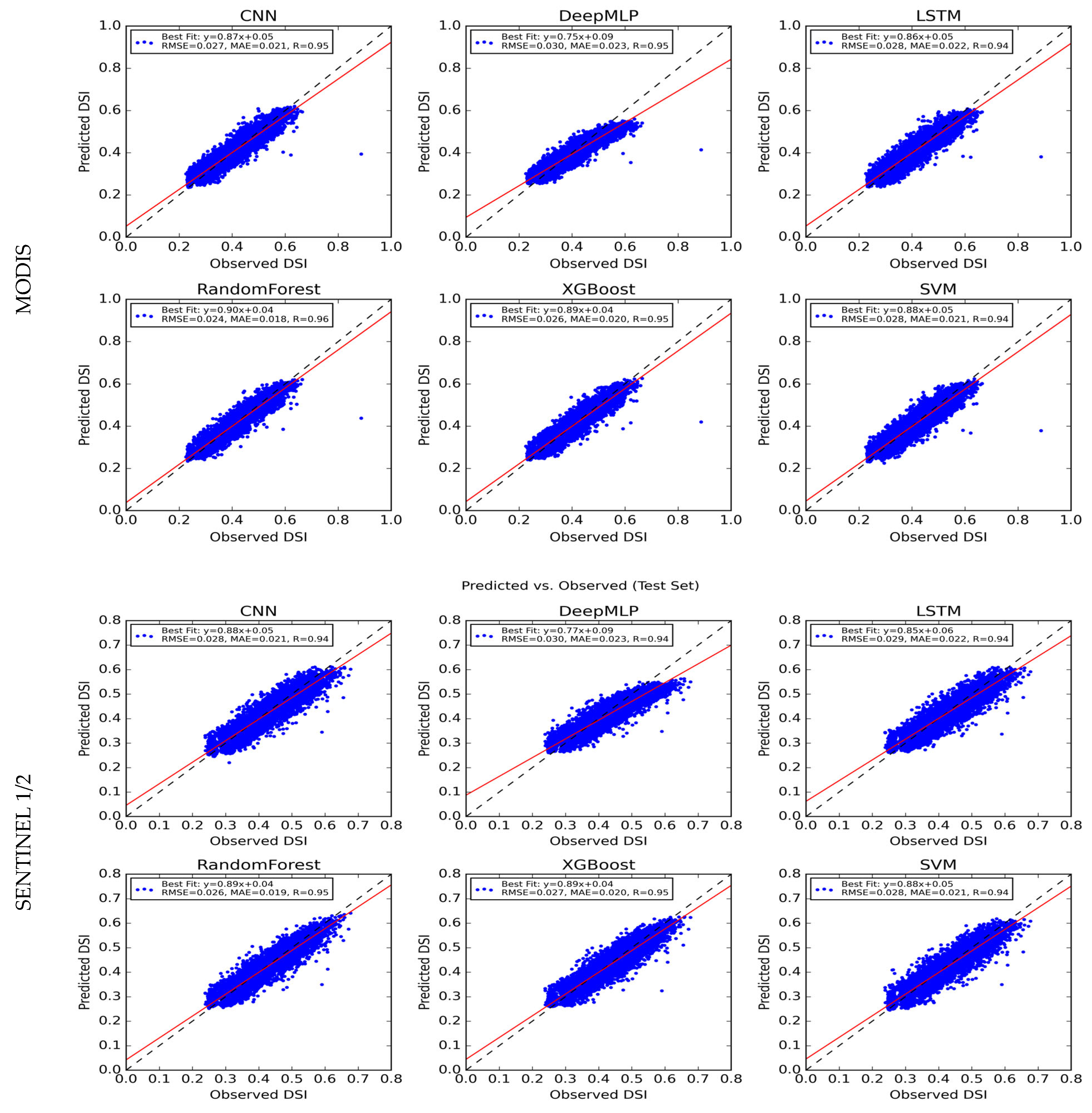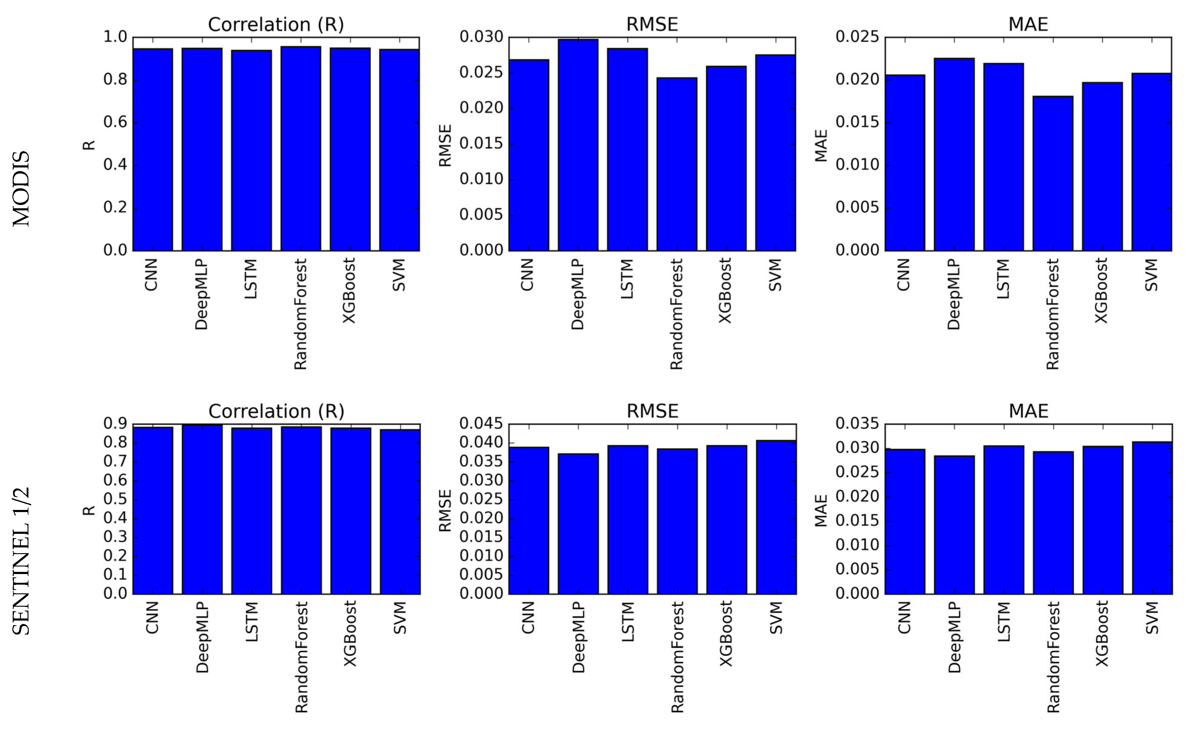 3.7. MODIS Versus Sentinel Dataset-Based Predictive Performance