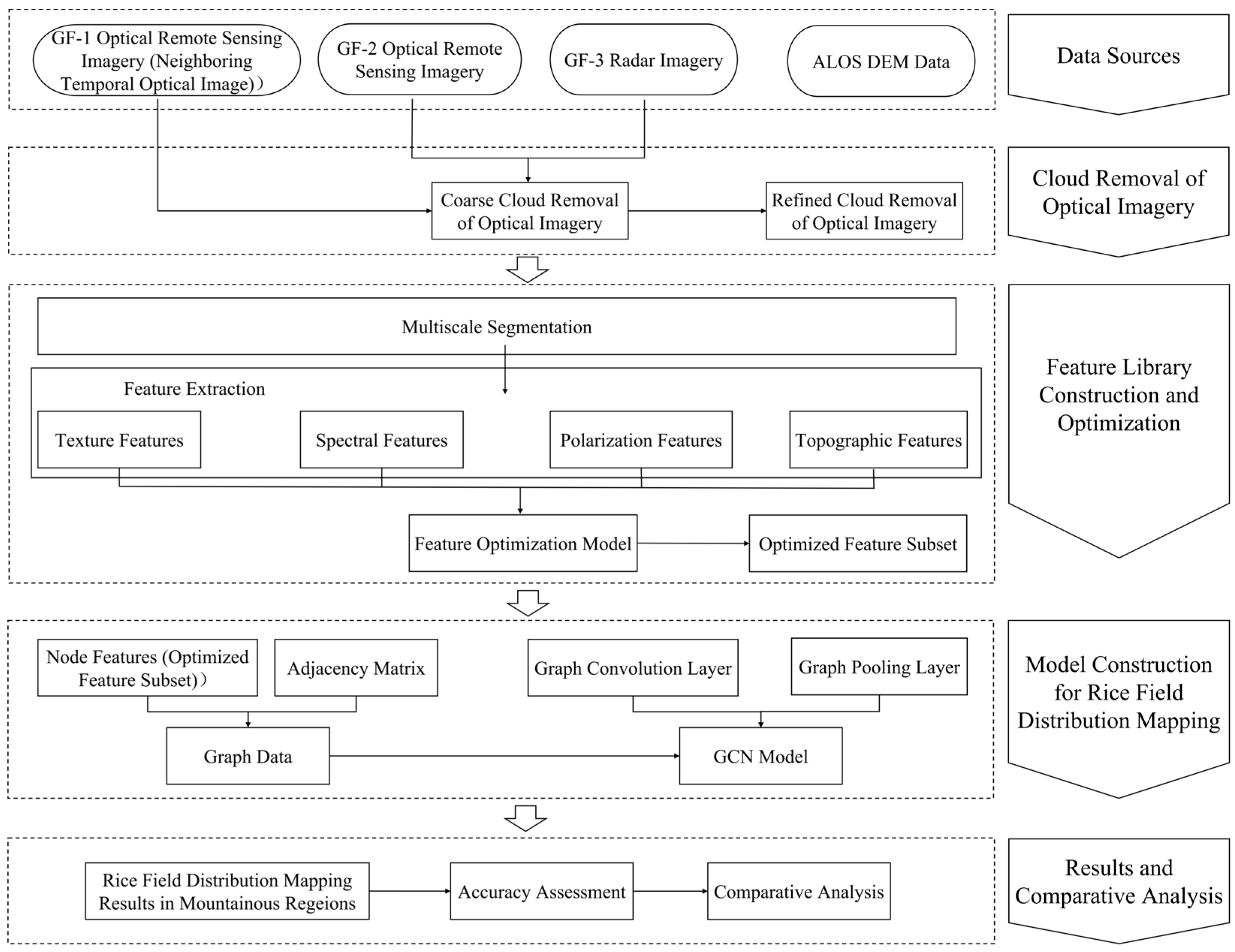 - It introduces a graph convolutional neural network that accounts for spatial correlation features between plots, and validates its effectiveness and applicability for rice identification tasks in mountainous regions.