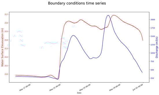 Boundary conditions time series used for the flood event modeling in HEC-RAS 2D.