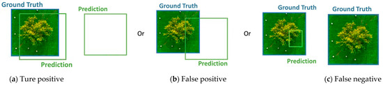 All the patches of 1024 × 1024 pixels were distributed among a training, validation, and test subset. The training and validation datasets were extracted from the same portion of the UAV imagery. The validation dataset was used during the training stage to monitor model performance on unseen data. The test dataset used in the study was extracted from another portion of the UAV imagery to guarantee it is truly unseen. As such, the evaluation results accurately represent the model’s ability to detect and classify objects in new and unseen environments. The UAV image covered a total orchard area of approximately 7.035 ha, which included about 4122 individual apple trees. Random margin cropping was applied to generate patches of 1024 × 1024 pixels around each tree, corresponding to a ground area of approximately 71.7 m × 71.7 m (≈0.51 ha) per patch. This process yielded a total of 4122 image patches. The cropping method itself produced augmentation, since the random margins around trees introduced variations in the extracted patches and increased dataset diversity. The dataset was divided into training, validation, and test sets following an approximate 70/15/15 split ratio. Specifically, the training and validation sets contained 2752 healthy and 785 unhealthy trees, while the test set contained 527 healthy and 58 unhealthy trees.