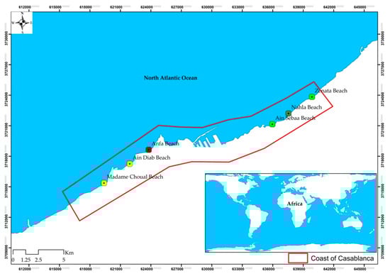 Map showing the location of the area of study on the coastline of Casablanca.