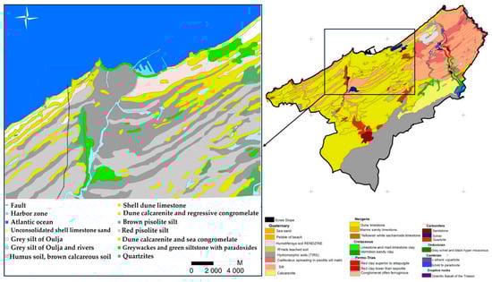 Extract of geologic map of Casablanca showing prominent geologic outcrops (modified from the geologic map of 1946 and Zerhouny et al. []).