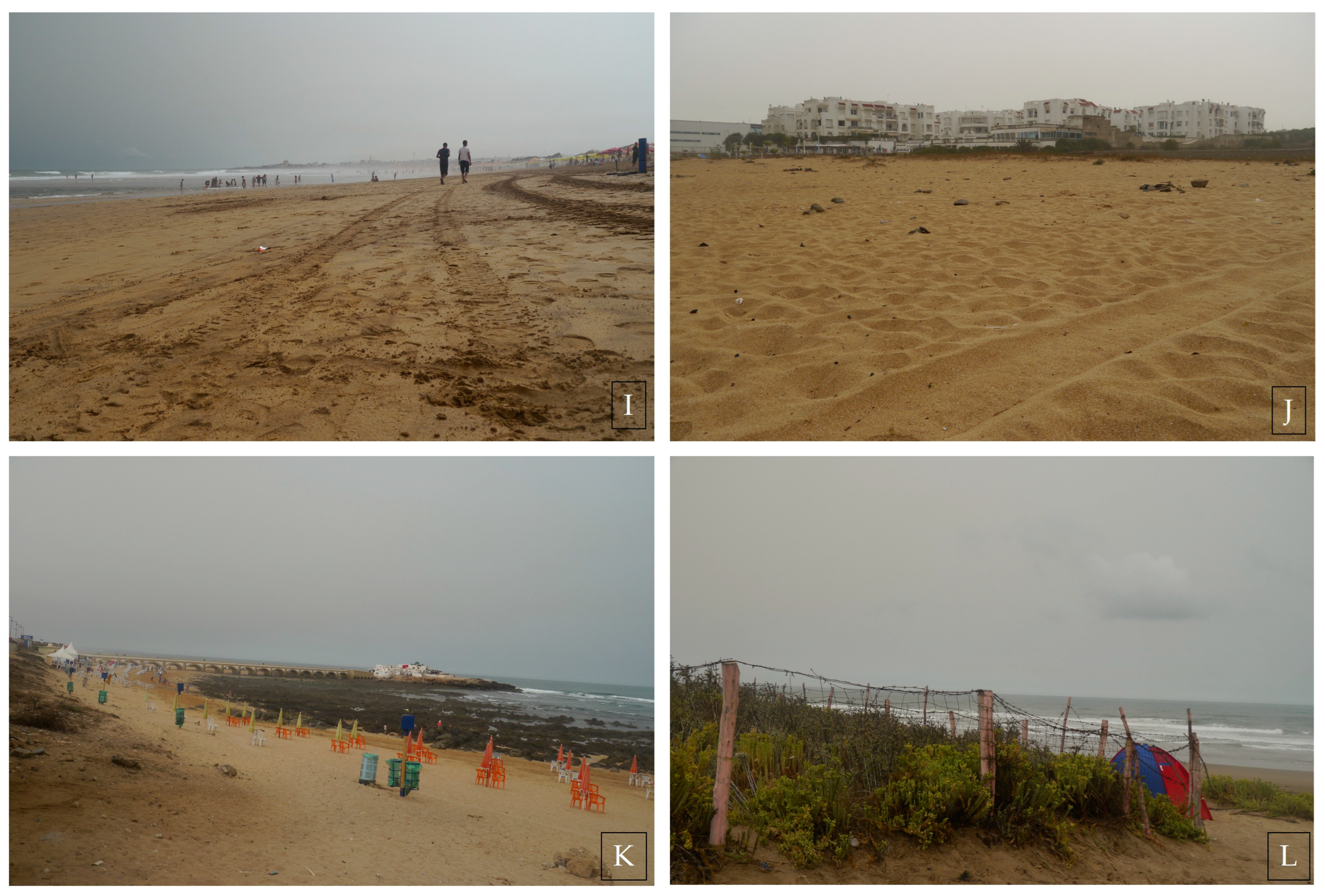 - Chtioui, T.; Hakkou, M.; Abdelhaq, A.; Benmohammadi, A.; Maanane, M. Storm’s influence on long-term shoreline evolution along Casablanca-Mohammedia (Morocco). Reg. Stud. Mar. Sci. 2024, 75, 103549. [Google Scholar]