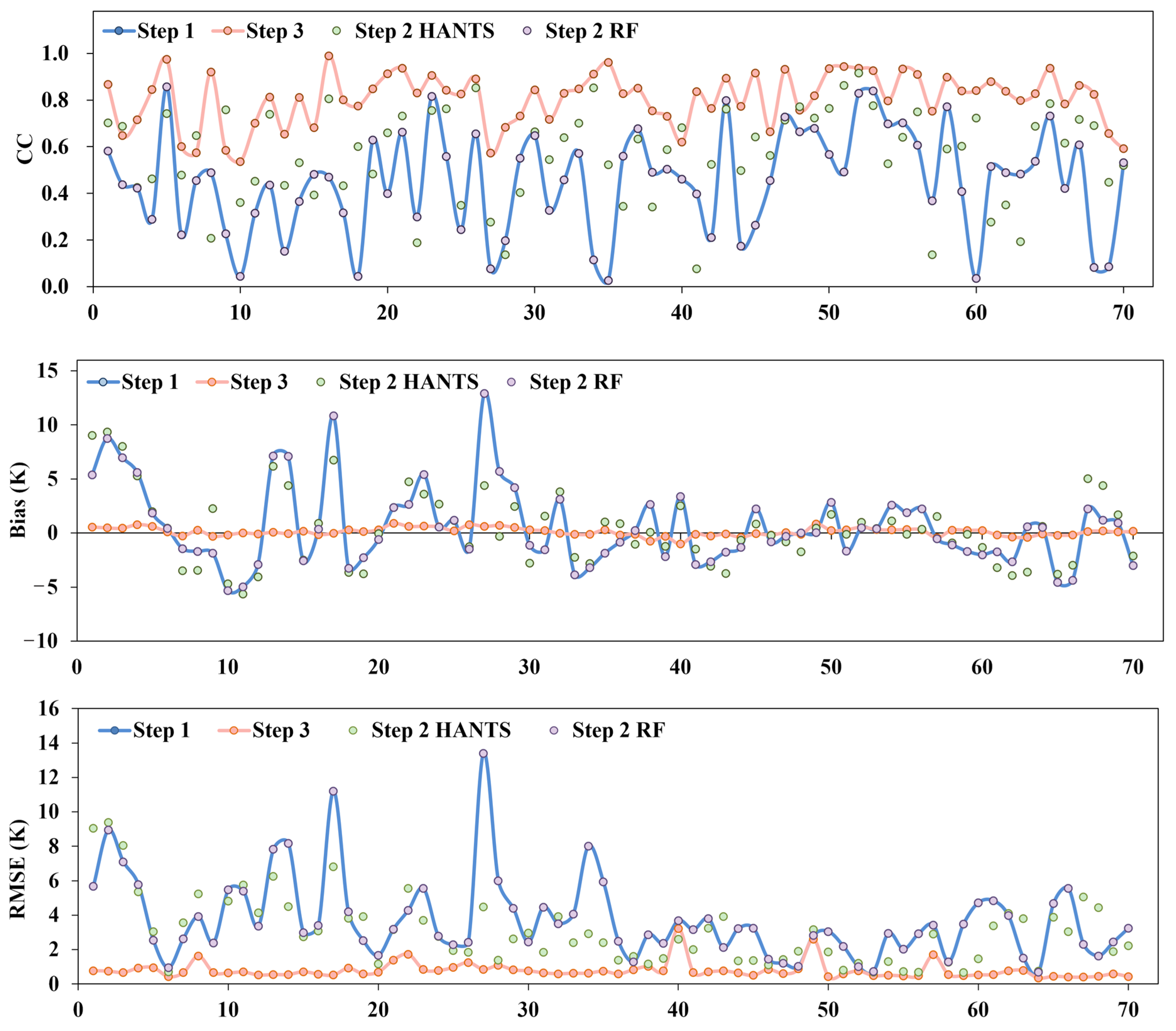 CC | Bias (K) | RMSE (K) | CC | Bias (K) | RMSE (K) |