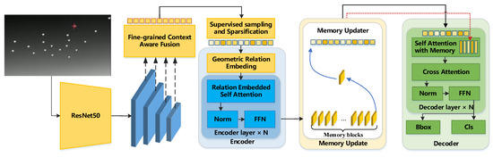 In this paper, we propose the GM-DETR (Geometric relation embedding and Memory DETR) to tackle these challenges and improve the detection performance mainly from the feature representation, the query sparsification, and the attention mechanism. To enhance the texture and semantic feature representation of infrared images, we propose a Fine-Grained Context-Aware Fusion (FCAF) module, which reduces the loss of semantic features. By analyzing the target characteristics of small UAVs in infrared detection, we propose a supervised sampling method to take the center and boundary points into account, which improves the detection and localization accuracy. Finally, the detection accuracy for mutually occluded and motion blur targets is improved by explicitly encoding the geometric relations among queries and establishing the long-term memory mechanism. The main contributions of our work are summarized as follows:
