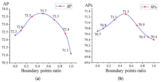 Ablation study results of the boundary points ratio. (a) Sensitivity curve of boundary points ratio on AP; (b) sensitivity curve of boundary points ratio on APs.