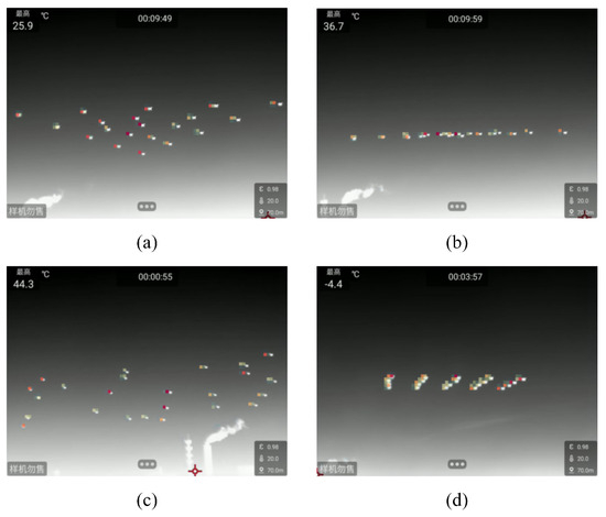 In the past few years, unmanned aerial vehicle (UAV) swarms have witnessed significant proliferation across both military and civilian domains [1,2,3], offering the potential to liberate people from repetitive work and reducing the probability of accidents. However, with the frequent occurrence of illegal modifications and flight violations, the challenge of countering malicious low-altitude UAV swarms grows increasingly urgent. Accurate detection of UAV swarms constitutes a critical first step in implementing anti-UAV countermeasures and has thus emerged as a prominent research focus. Among the traditional detection methods, the imaging effect of visible image detection is significantly influenced by external factors such as inclement weather and light intensity, which often lead to unreliable performance. Therefore, it is challenging to achieve continuous and reliable monitoring under some conditions, including stormy weather and long-distance scenarios. Radar-based detection, which relies on echoes reflected by the target, suffers from low-altitude and close-range blind zones, making it susceptible to losing low-altitude targets within UAV swarms. Coupled with the limited reflective area of small UAVs, this method is inadequate for precise and efficient continuous surveillance. Conversely, infrared target detection is not subject to limitations imposed by light intensity, limited reflective area, or inclement weather, which makes continuous surveillance at extended range of low-altitude targets possible. As a result, infrared target detection presents a more suitable alternative for anti-UAV applications.