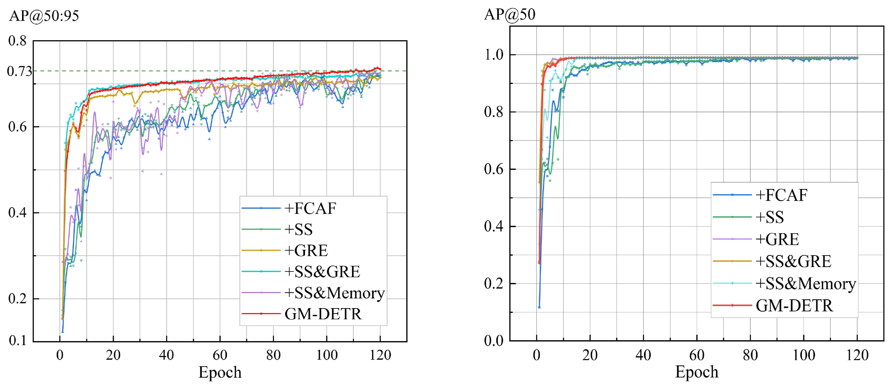 To better validate the effectiveness of the GM-DETR, we compared the performance of the GM-DETR model with models that have achieved the cutting-edge performance in recent years under the same experimental settings, namely, Faster R-CNN [