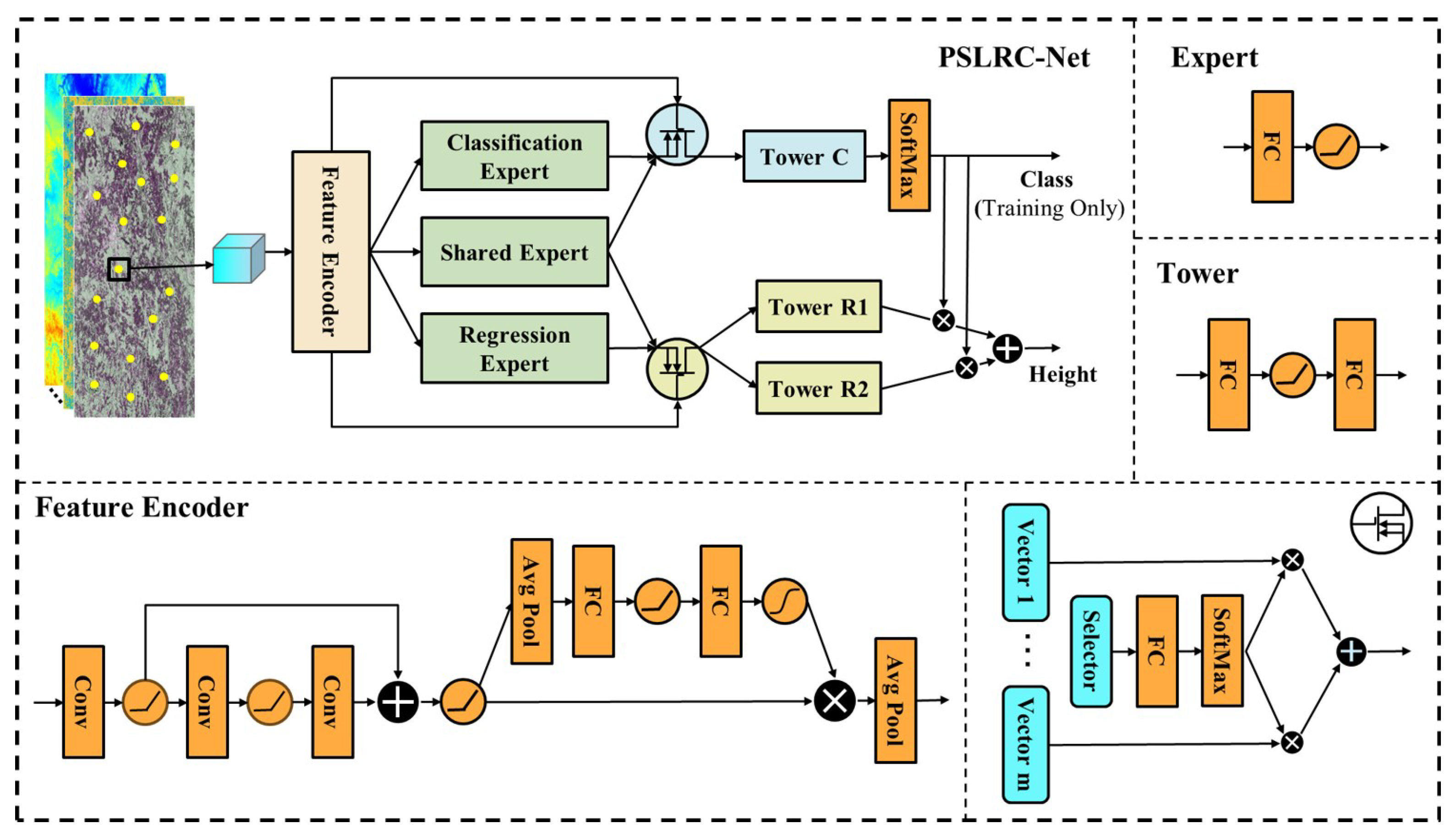 Region-specific optimization: We propose PSLRC-Net, a multi-task learning network that incorporates a forest/non-forest classification branch into the elevation inversion task to guide region-specific optimization of the model. This mechanism combines classification and regression tasks, directs the model to focus on feature differences between regions, adaptively optimizes the feature learning process, and significantly improves the accuracy of elevation prediction in forested and non-forested areas.