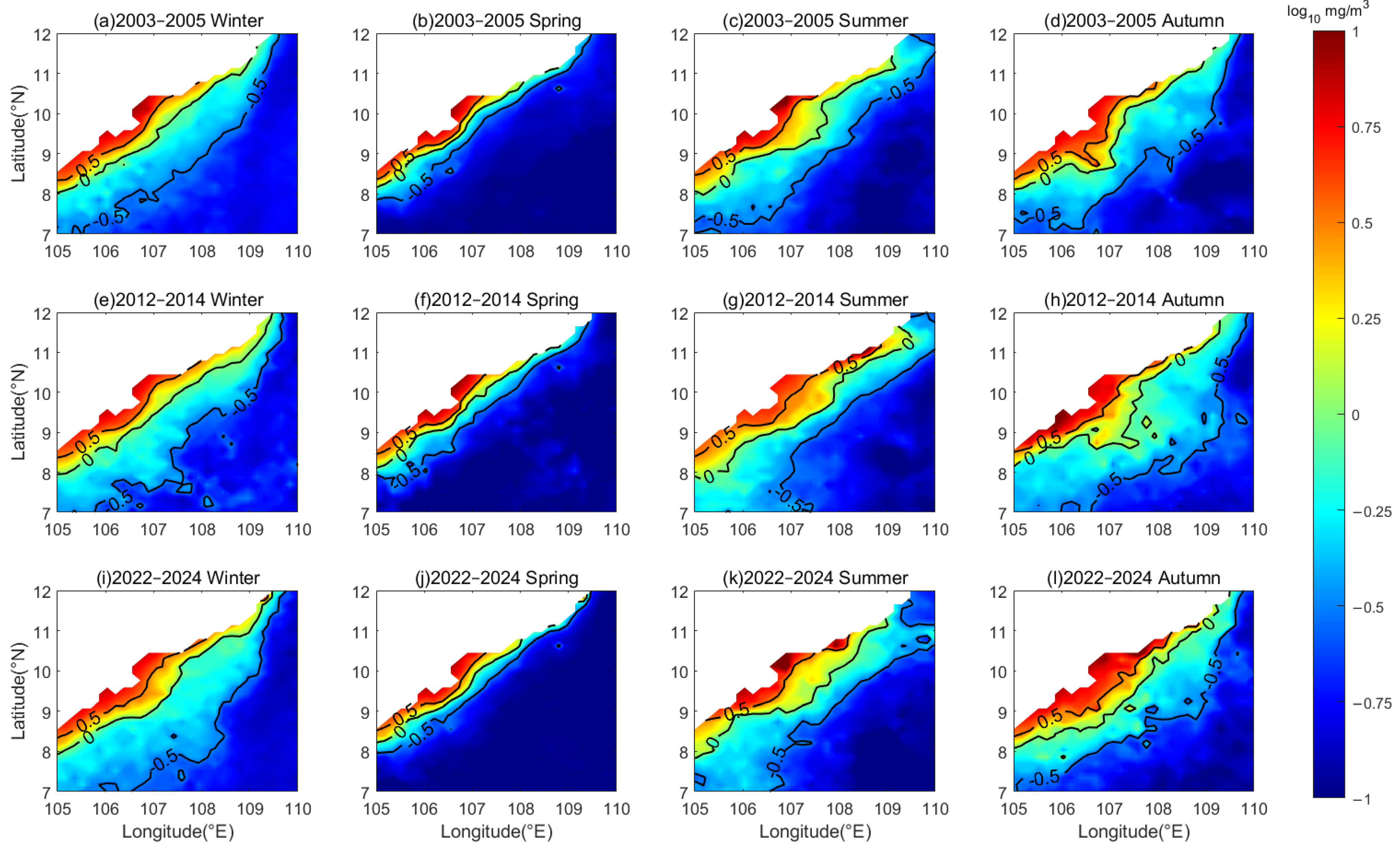 - Chlorophyll-a in the South China Sea shows strong seasonal and spatial variability.