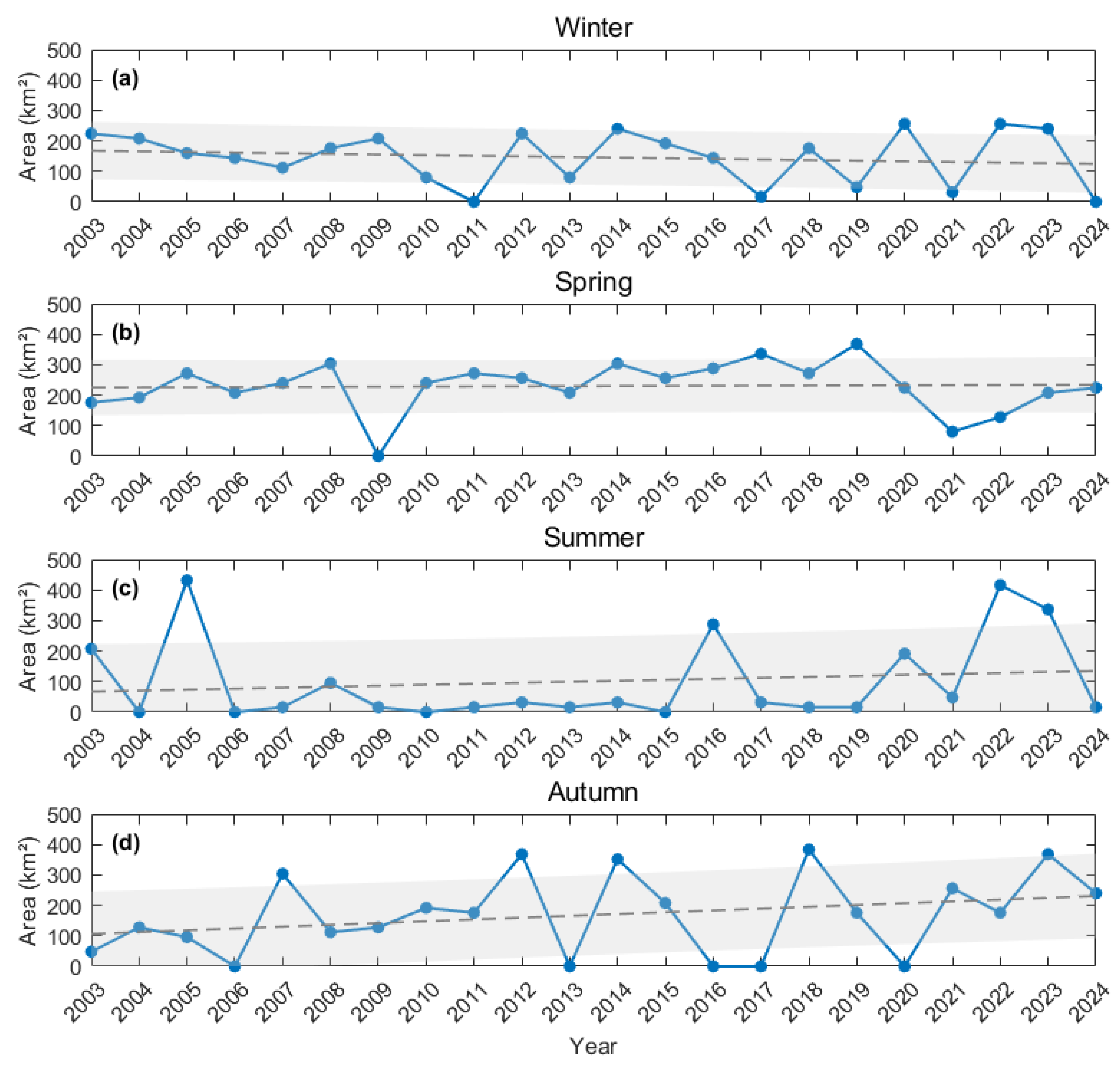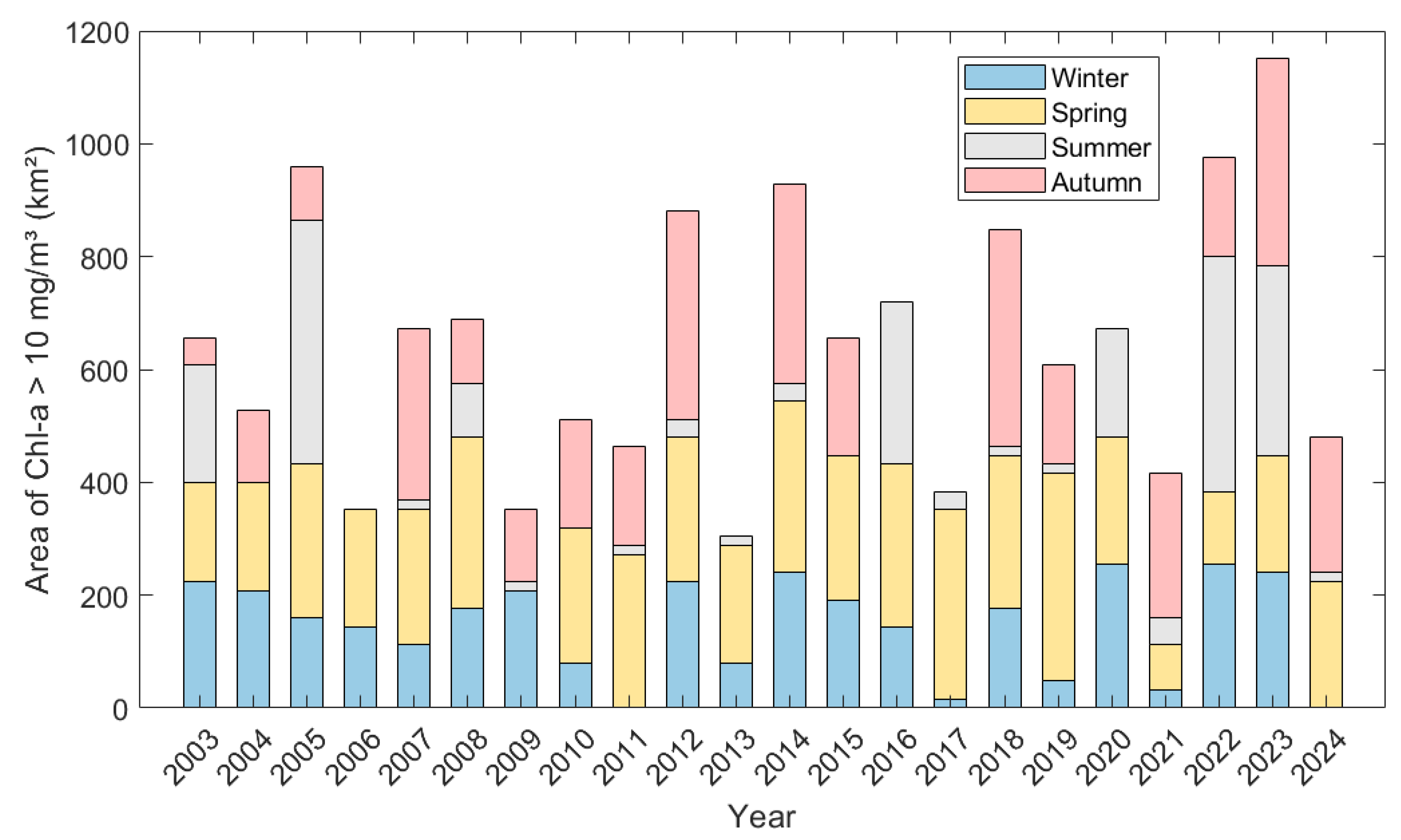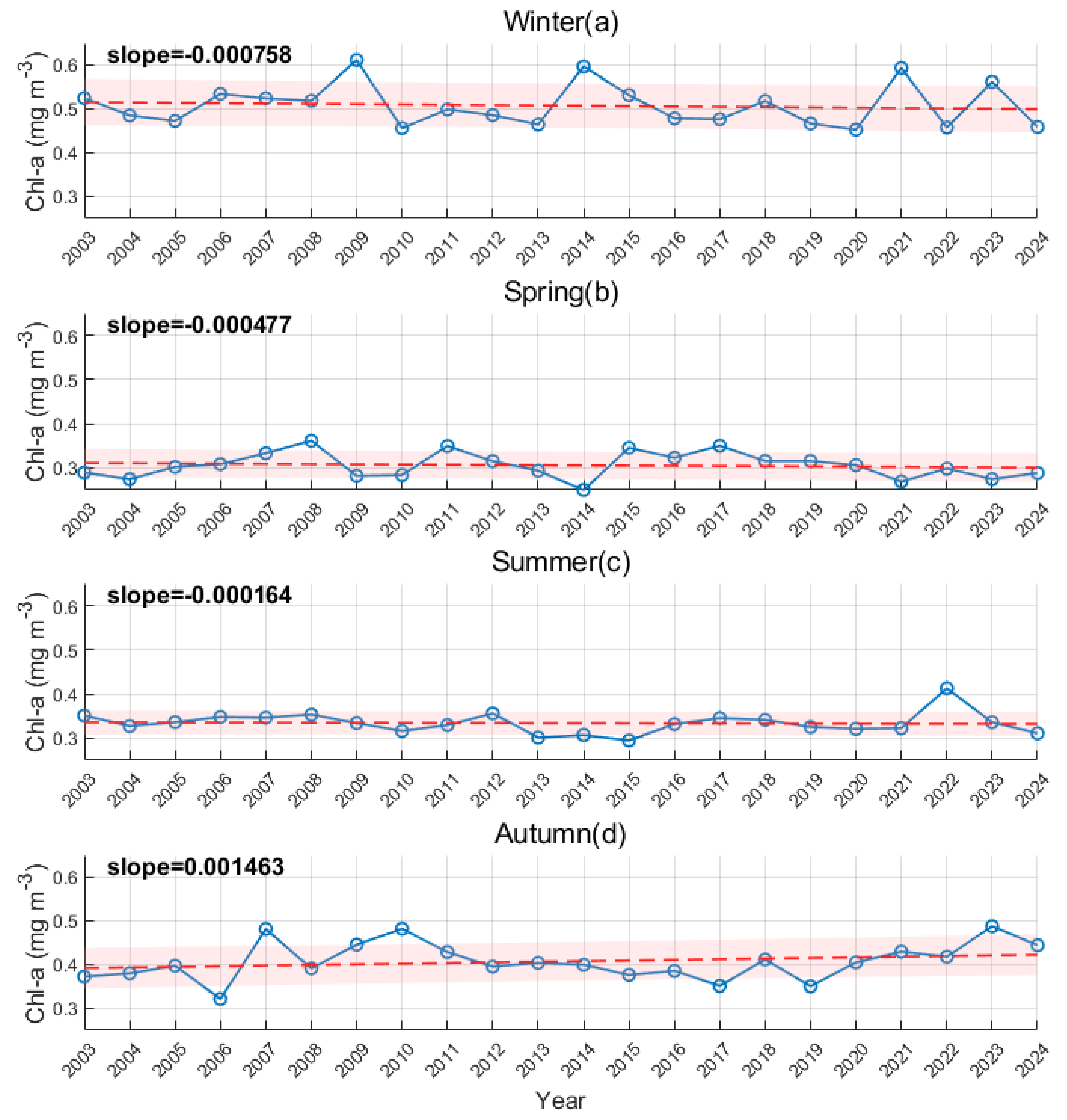 3.2.1. Seasonal Variations of Chlorophyll-a Concentration
