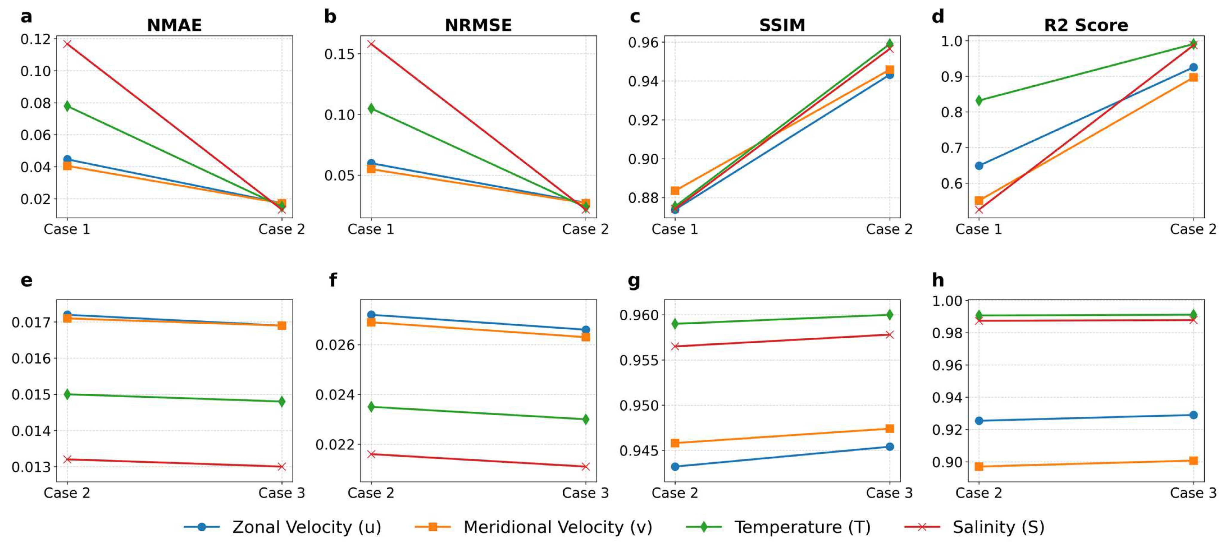- All input and output data are processed using sea–land masking to ensure that model errors are calculated only on valid ocean data, thereby ensuring fair and consistent evaluation.