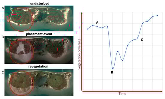 Overall, there were a total of 501 individual placement events detected from 1984 until 2020 at 1048 known dredge locations, resulting in an average of 0.48 events per site. This means an average of 15.4 undisturbed upland locations are freshly disturbed each year. However, the impact of this disturbance is unequal across the landscape, with most of the disturbance occurring in coastal locations due to extended recovery times. Our data does not indicate the root cause for the difference between classes, but hypersaline soils, elevation, confined placement, and isolation are likely four contributing factors [17]. Inland locations have less issues with hypersalinity, or physical isolation from colonizing vegetation. A case study using in situ data would help to answer some of these questions regarding coastal and inland recovery differences.