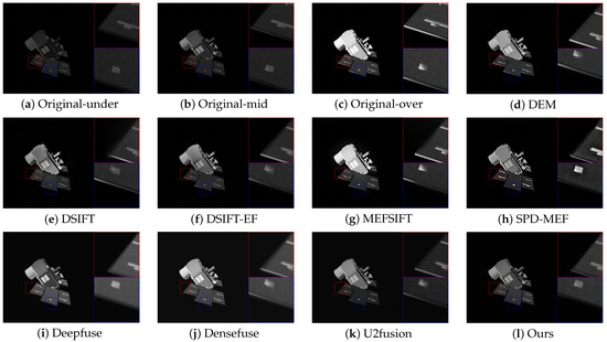 - Ram Prabhakar, K.; Sai Srikar, V.; Venkatesh Babu, R. DeepFuse: A Deep Unsupervised Approach for Exposure Fusion with Extreme Exposure Image Pairs. In Proceedings of the 2017 IEEE International Conference on Computer Vision: ICCV 2017, Venice, Italy, 22–29 October 2017; pp. 4443–5179. [Google Scholar]