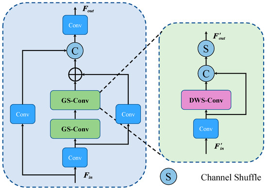 The SCSP module is designed based on Group Shuffle Convolution (GSConv) [58], aiming to further improve the computational efficiency and feature extraction capability of the network. GSConv is a lightweight convolution method that combines the advantages of standard convolution (SConv) and depth-wise separable convolution (DWS SConv) to reduce computational costs while maintaining accuracy. The SCSP module also introduces the concept of a cross-stage partial network, which enhances feature transfer and fusion by establishing cross-stage connections between different stages.