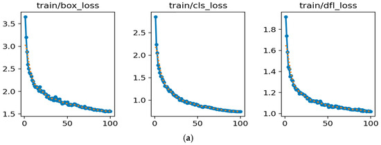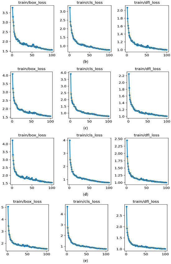 As for the hardware facilities, we use a personal computer (PC) with Inter Core i9-10900KF CPU, NVIDA GeForce RTX 4090D GPU, and 96 GB of memory to conduct our experiments. As for the software details, we employ Python 3.11 as our programming language, Ultralytics 8.2.29 with Pytorch 2.4.0 [59] as our DL framework, where CUDA 12.4 is called for accelerating training. As for the parameter details, the input size of the network is fixed at 660 × 720 pixels, the optimizer is chosen as Adaptive Moment Estimation (Adam) [60], the mini-batch-size is set as 16, the training epoch is set as 100, the initial learning rate is set as 0.001, the final learning rate is set as 0.00001, the momentum is set as 0.937, and the weight decay is set as 0.0005. During inference, the post-process technology is chosen as Non-Maximum Suppression (NMS) [61] with an intersection over union (IoU) threshold of 0.7 and a confidence score of 0.5.
