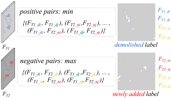 - Zhang, Y.; Deng, M.; He, F.; Guo, Y.; Sun, G.; Chen, J. FODA: Building Change Detection in High-Resolution Remote Sensing Images Based on Feature–Output Space Dual-Alignment. IEEE J. Sel. Top. Appl. Earth Obs. Remote Sens. 2021, 14, 8125–8134. [Google Scholar] [CrossRef]