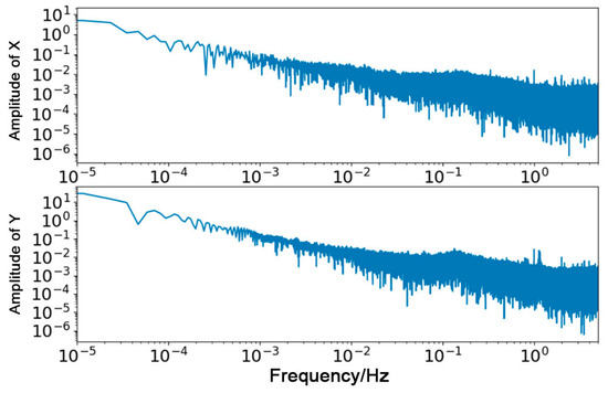 Frequency spectrum of GNSS X (a) and Y (b) directions.