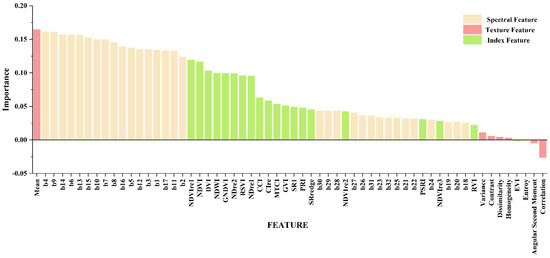 Spectral indices have been proven to significantly impact the accuracy of classification outcomes. Based on previous studies [46,47,48], we selected the index features shown in Table 3 to improve the accuracy of the classification results. To fully exploit the vegetation community characteristics embedded in the hyperspectral remote sensing imagery, we extracted the spectral reflectance, vegetation indices, and texture features derived from the spectral reflectance. These features were then used to enhance the classification performance. The first principal component of the original images from band 4 contained more feature information than any single band image; therefore, the gray-level co-occurrence matrix (GLCM) texture features were extracted based on the first principal component of the original imagery. Specifically, the study utilized the GLCM method to extract eight texture features from band 4 of the Zhuhai-1 hyperspectral images, including mean, variance, homogeneity, dissimilarity, contrast, entropy, angular second moment, and correlation. In total, 20 spectral indices and 8 texture features were ultimately extracted. The formulas for the vegetation and texture feature indices, as well as the specific bands used in the calculation of these indices in this study, are listed in Table 3.