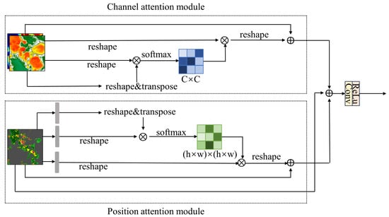 where represents the influence of the i-th channel on the j-th channel and A represents the initial input feature. Following matrix multiplication of X and A, we reshape the result into and multiply the result by a scale parameter (learning weights from 0). A sum operation with A is then performed one-by-one to obtain the final output . The formula is as follows: