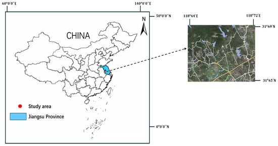 The pine tree image data employed in this study to identify pine wilt disease were procured by our team from natural pine forests, including foreign pine trees and horsetail pine species. The image data of pine wilt were collected from Hengxi Street, Jiangning District, Nanjing City, Jiangsu Province, China (31°66′75″N, 118°69′06″E) (as shown in Figure 1). The area is mainly composed of the area comprises 22 natural villages, with the terrain exhibiting a southwest-to-northeast gradient, with the highest elevation reaching 382 m above sea level. The annual precipitation is 1276.9 mm, with the air temperature above 0 degrees Celsius for most of the year. The environment is conducive to the survival of pine wood nematode, thereby creating conditions that facilitate the emergence of pine wilt infection in the study area [27]. Photographic documentation of pine forests in several natural villages, including Xugao Village, was conducted primarily during the spring of 2023. The documentation spanned the full spectrum of pine wilt infestation, from the initial signs of infestation to the complete defoliation of the trees. In favorable weather conditions and with optimal visibility, images were obtained that depicted different levels of infestation severity. Given the expansive nature of the pine forest environment, the dataset encompasses both areas characterized by dense pine tree cover and those exhibiting relatively sparse pine tree populations. In areas of dense forest, the images demonstrate the presence of shading between trees and overlapping canopies, as well as fluctuations in background illumination attributable to the time of day at which they were captured.