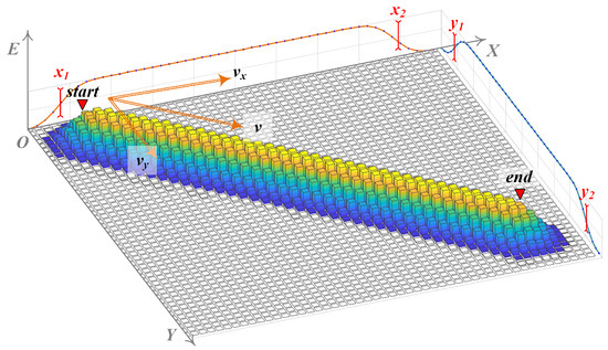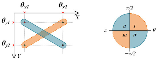 - Coordinate Generation: Based on the angle between the principal axis of grayscale distribution and the X-axis, the 4 positional parameters from step 1 are combined into endpoint coordinates and . Note that at this stage, it is still not determined which of and corresponds to or .