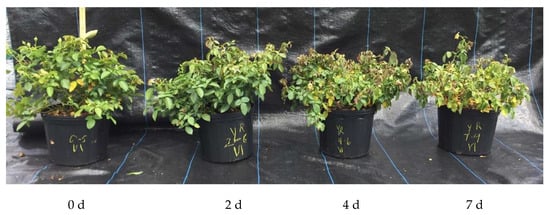 Figure 3. Photographs of one plant randomly selected from each water stress level for rose following the collection of hyperspectral images.