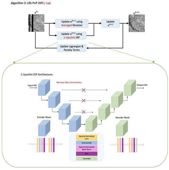 The enhanced algorithm is denoted as LRS-PnP-DIP(1-Lip), which is shown in Algorithm 3, and its flow chart is provided in Figure 1.