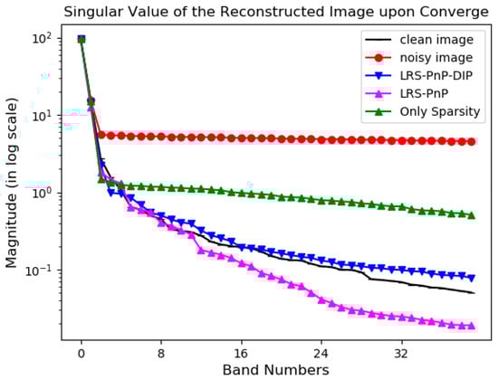 LR is another widely used regularizer in HSI processing, which assumes that pixels in the clean HSI image have high correlations in the spectral domain, thus capturing both the spectral similarity and global structure of HSIs. LR allows for the modeling of the HSI as a low-rank matrix; thus, the missing and corrupted information in the HSIs can be effectively reconstructed by leveraging the underlying low-rank structure. In many state-of-the-art HSI reconstruction algorithms, LR is often used in parallel with SR to achieve better reconstruction accuracy [30,32]. By combining the two priors together, algorithms can better handle missing data, noise, and corruption while maintaining the overall structure and spectral integrity of the image. For more detailed information on LR and SR of hyperspectral images, we refer readers to the review work in [33].