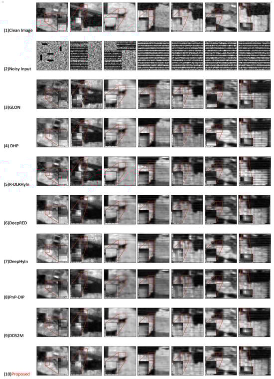 - Xue, J.; Zhao, Y.; Liao, W.; Kong, S.G. Joint spatial and spectral low-rank regularization for hyperspectral image denoising. IEEE Trans. Geosci. Remote Sens. 2017, 56, 1940–1958. [Google Scholar] [CrossRef]