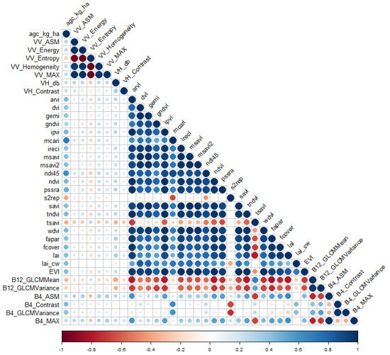 Selected predictors of forest AGC based on Pearson product-moment correlation coefficients.