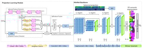 - Cheng, R.; Razani, R.; Ren, Y.; Bingbing, L. S3net: 3d Lidar Sparse Semantic Segmentation Network. In Proceedings of the 2021 IEEE International Conference on Robotics and Automation (ICRA), Xi’an, China, 30 May–5 June 2021; pp. 14040–14046. [Google Scholar]