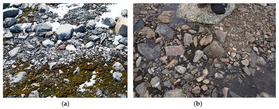 Mapping vegetation in Antarctica has some very specific difficulties. Figure 2 demonstrates, for instance, how vastly different the distribution of vegetation can be in Antarctica. As shown in Figure 2a, vegetation is abundant, whereas Figure 2b depicts how moss and lichen species appear intermittently between great stretches of rocks and snow.