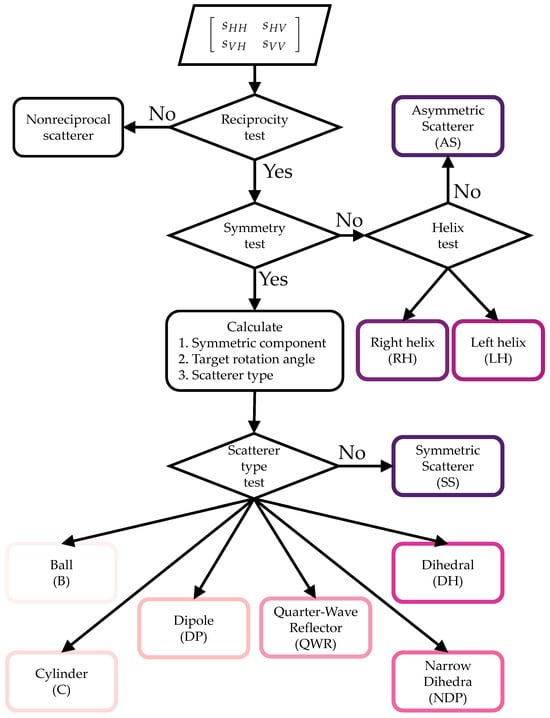 As shown in Figure 5, the Cameron decomposition method involves multiple stages of analysis based on the input polarization scattering matrix :