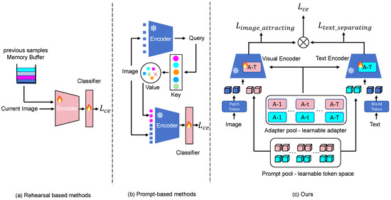 - Smith, J.S.; Karlinsky, L.; Gutta, V.; Cascante-Bonilla, P.; Kim, D.; Arbelle, A.; Panda, R.; Feris, R.; Kira, Z. Coda-prompt: Continual decomposed attention-based prompting for rehearsal-free continual learning. In Proceedings of the IEEE/CVF Conference on Computer Vision and Pattern Recognition, Vancouver, BC, Canada, 17–24 June 2023; pp. 11909–11919. [Google Scholar]