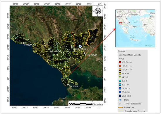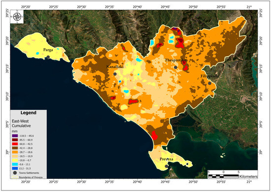 East–west cumulative displacement region of Preveza.
