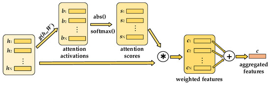 Finally, the weighted features are summed up on each feature dimension to obtain the aggregated feature vector, and the modulus is calculated to match the subsequent RV perceptron. The final output is denoted as (), and then the d-th dimensional value of the output can be written by