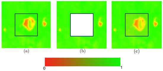 The methods in this work aim to reconstruct missing sections of NDVI images, approximating values as closely as possible to their unobstructed counterparts. The obstructed area, defined as the Region of Interest (ROI), is represented by the matrix M in . Two types of obstructions can hinder the acquisition of NDVI for ROI throughout the year: