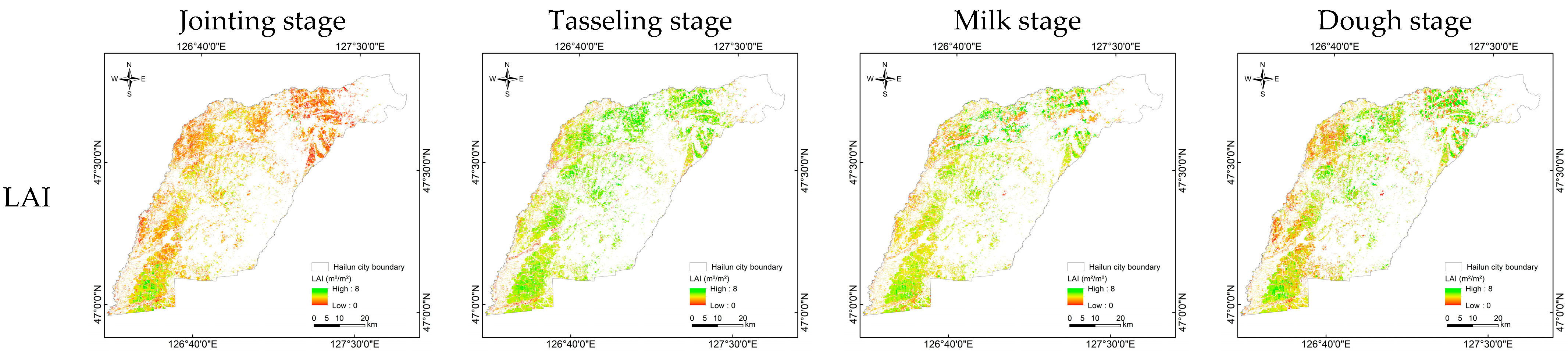 | 2 | 20230806 | LAI, CCC, CWC, FVC, AGB | Tasseling stage |