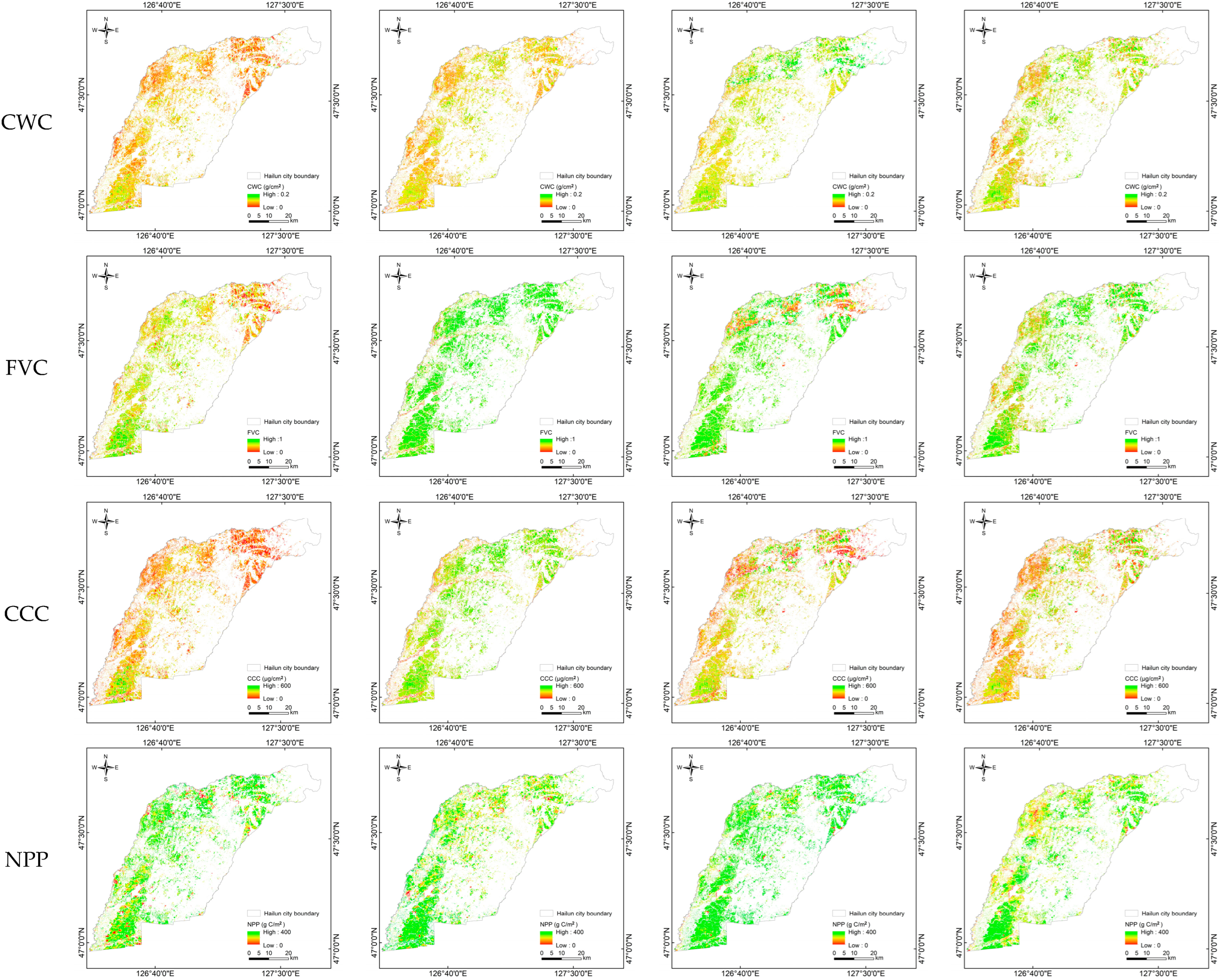 | Phenological Period Description | LAI | CWC | FVC | CCC | NPP |