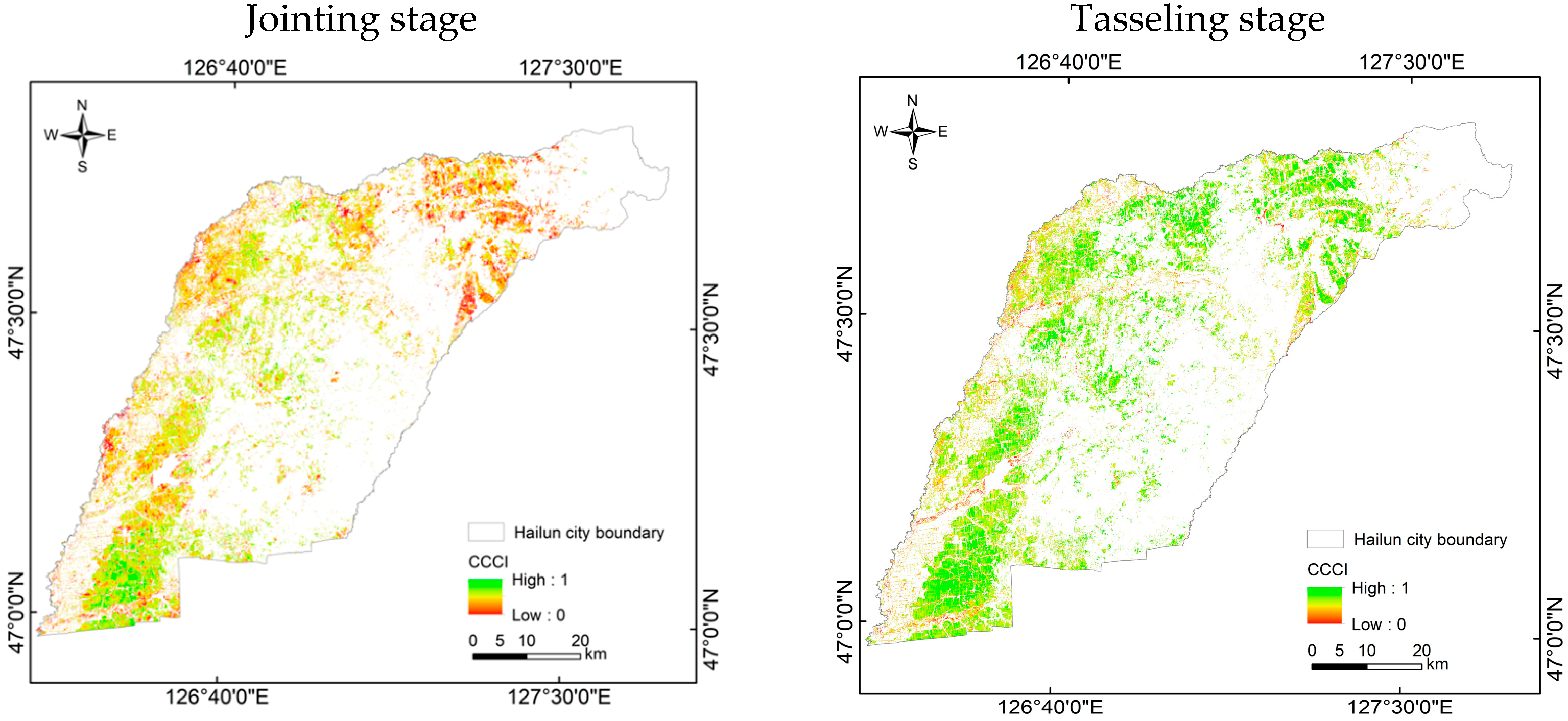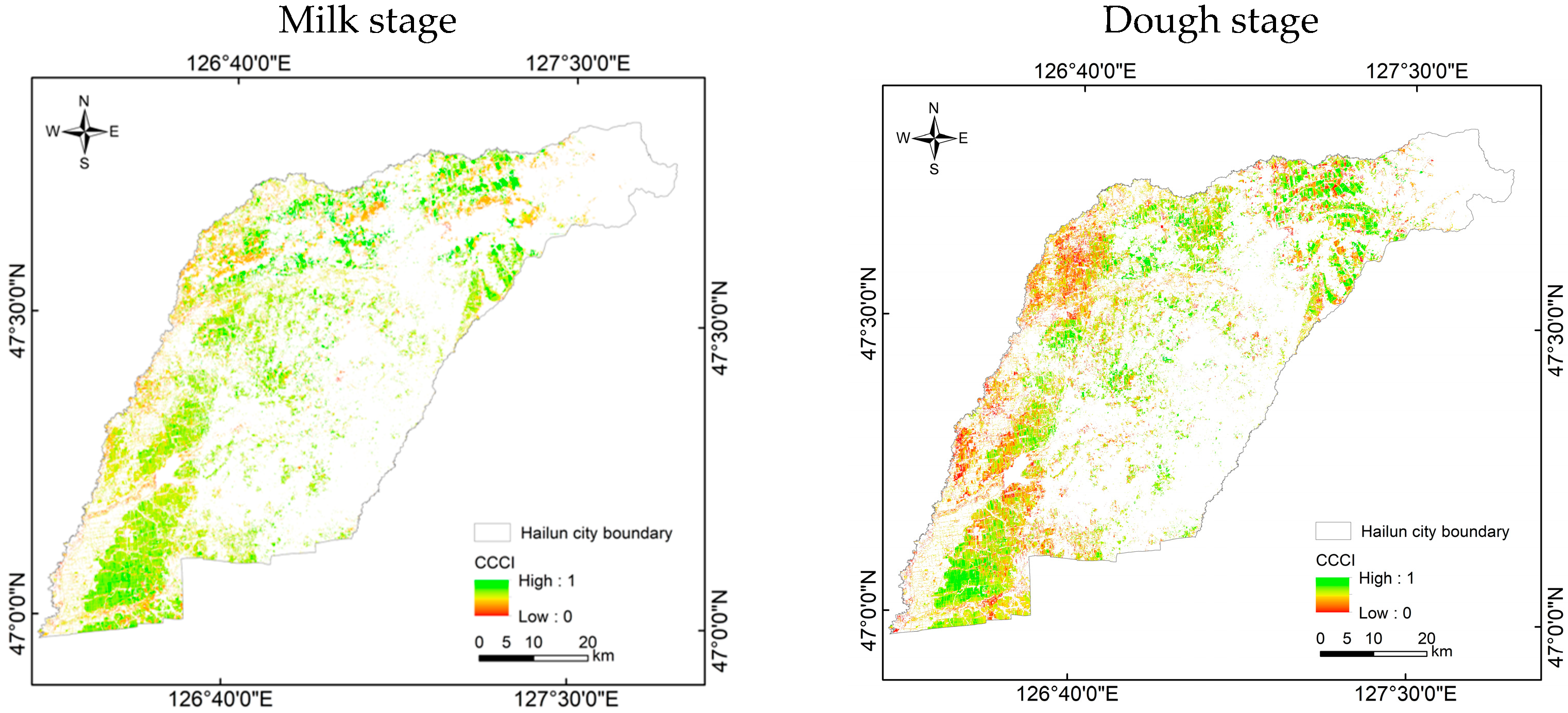 4.2.3. Construction of the CCCI for Key Phenological Periods