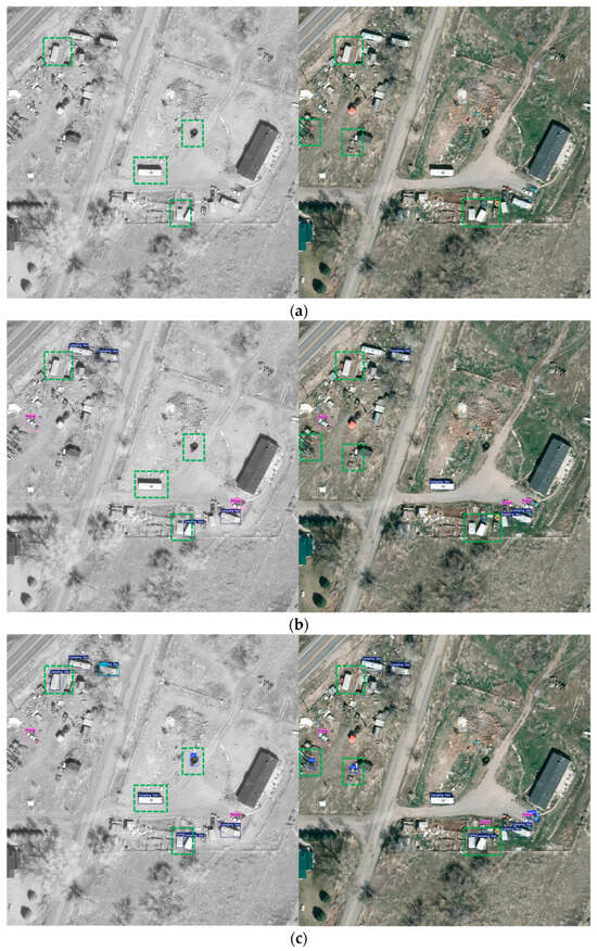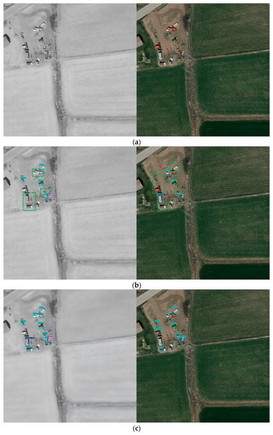 - Compared to the conventional P3–P5 multi-stage fusion approach, the proposed P4-level cross-modal fusion strategy significantly enhances model performance, increasing mAP50 from 81.0% to 81.5% while reducing model parameters by 0.96 M. This improvement demonstrates the effectiveness of the strategy. Performing one-time fusion solely at the P4 level not only decreases computational complexity but also achieves better fusion performance.