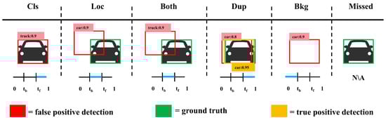 - Both Cls and Loc Error: tb ≤ IoUmax ≤ tf for GT of the incorrect class (i.e., classified incorrectly and localized incorrectly).
