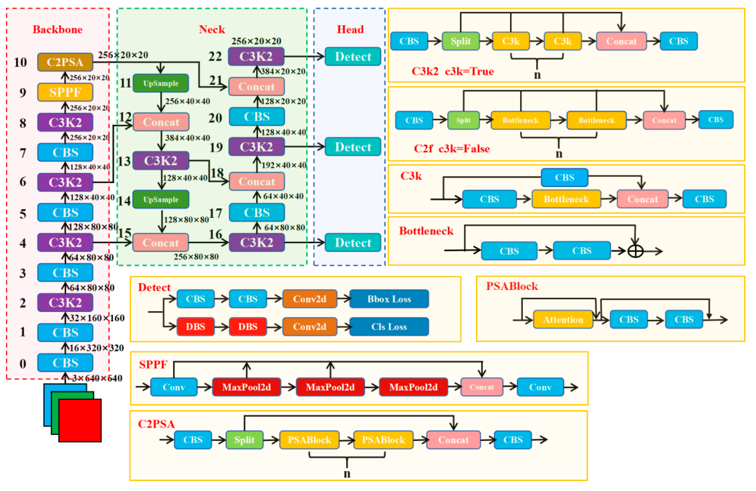 - C: A multi-scale and multi-level feature fusion pathway is reconstructed at the neck of the model to fully integrate the multi-level expression of large-size feature maps.