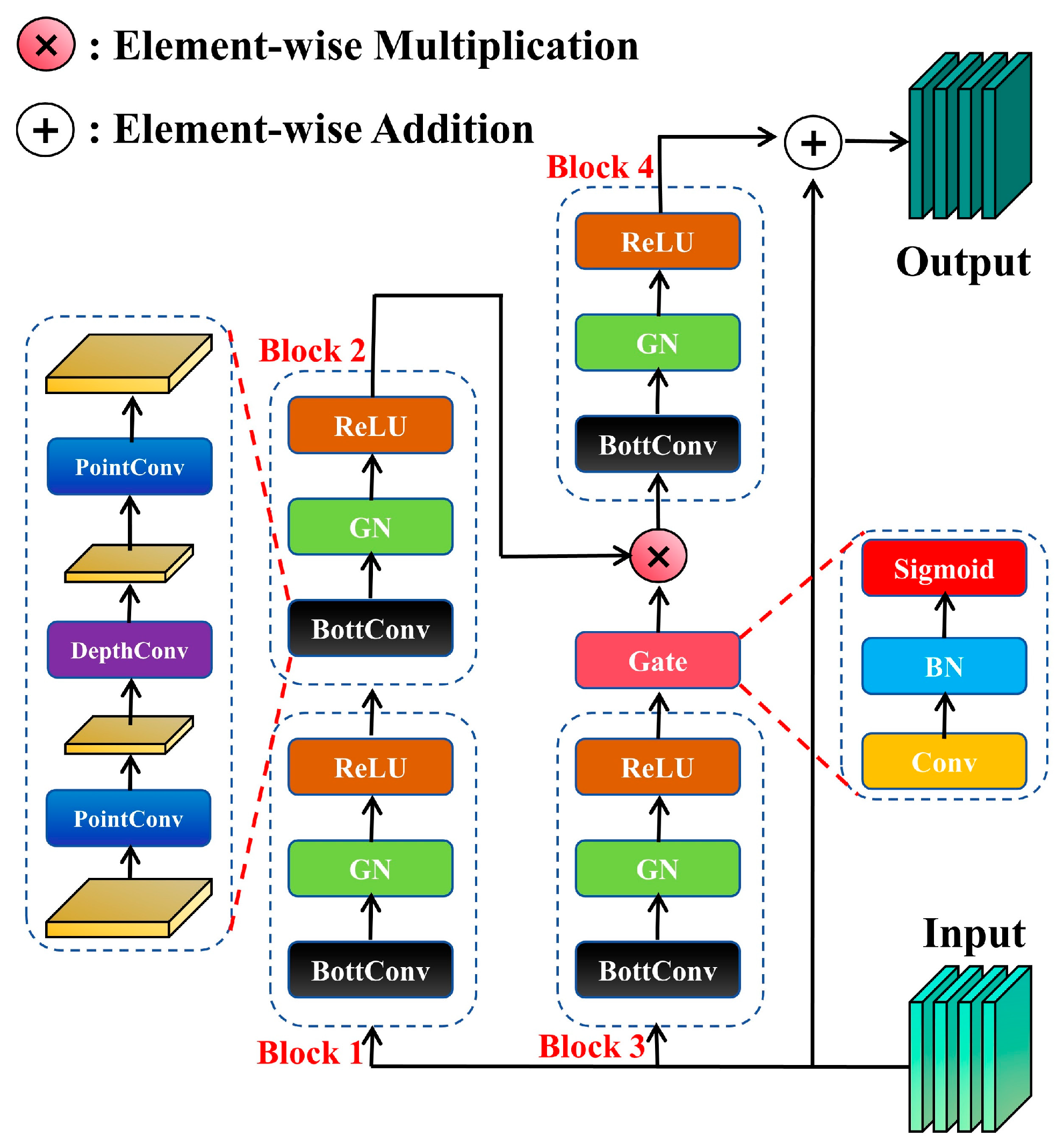 - Incorporating a gated activation convolution module to dynamically control feature flow.