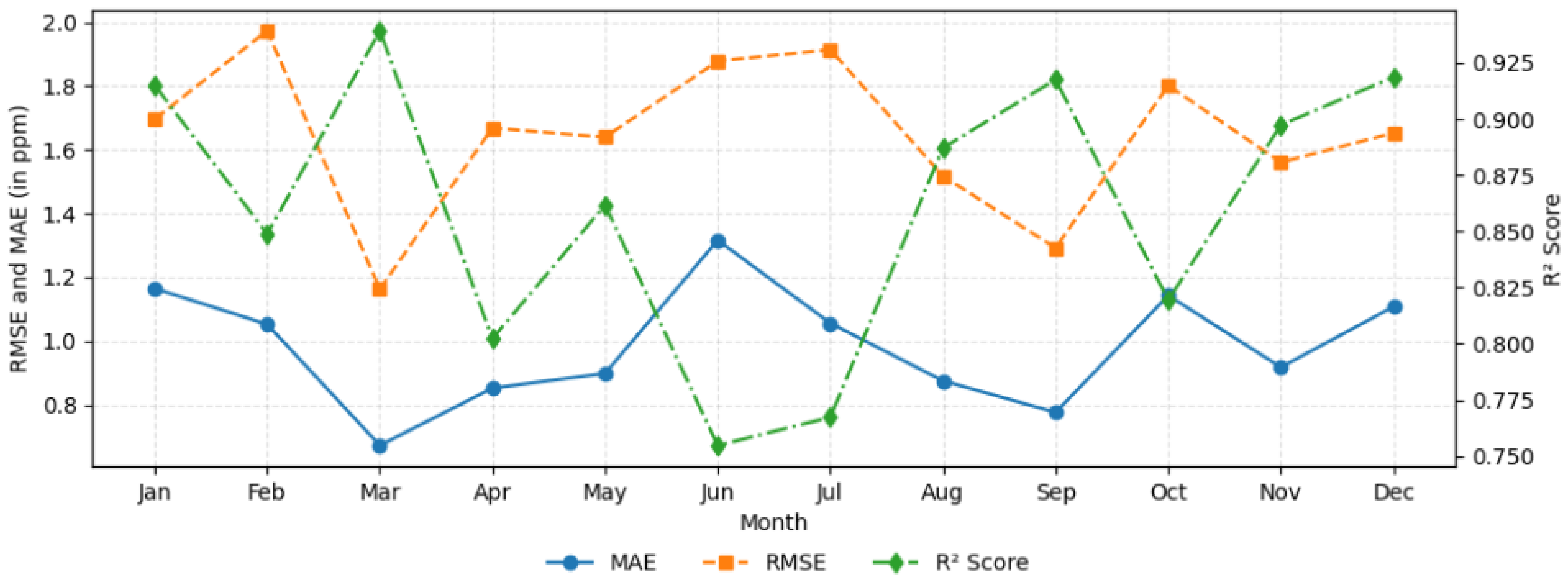 RMSE (in ppm) | MAE (in ppm) | ||