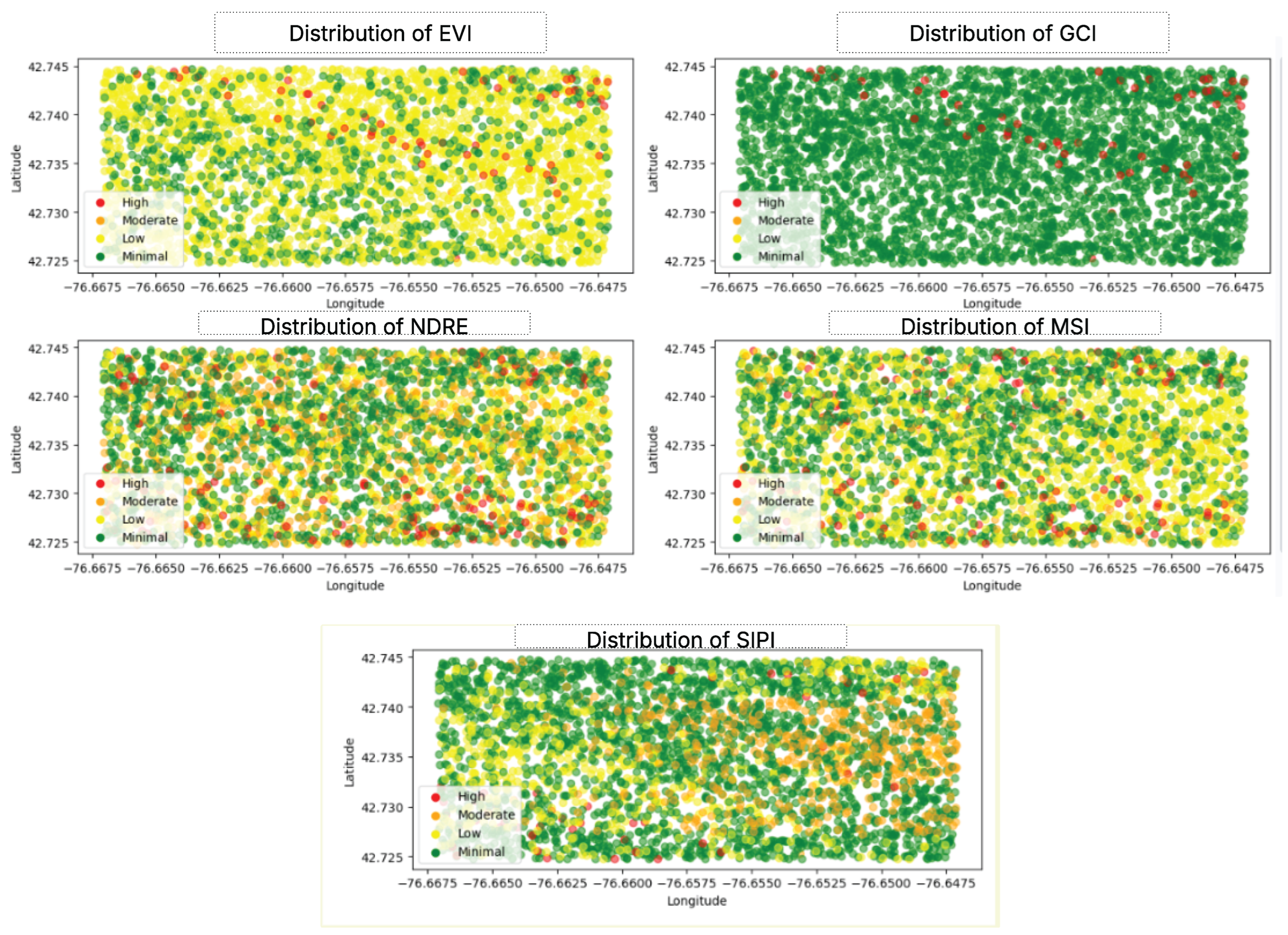 - MSI: Highlights plant water stress; higher values indicate disease-prone areas [29].