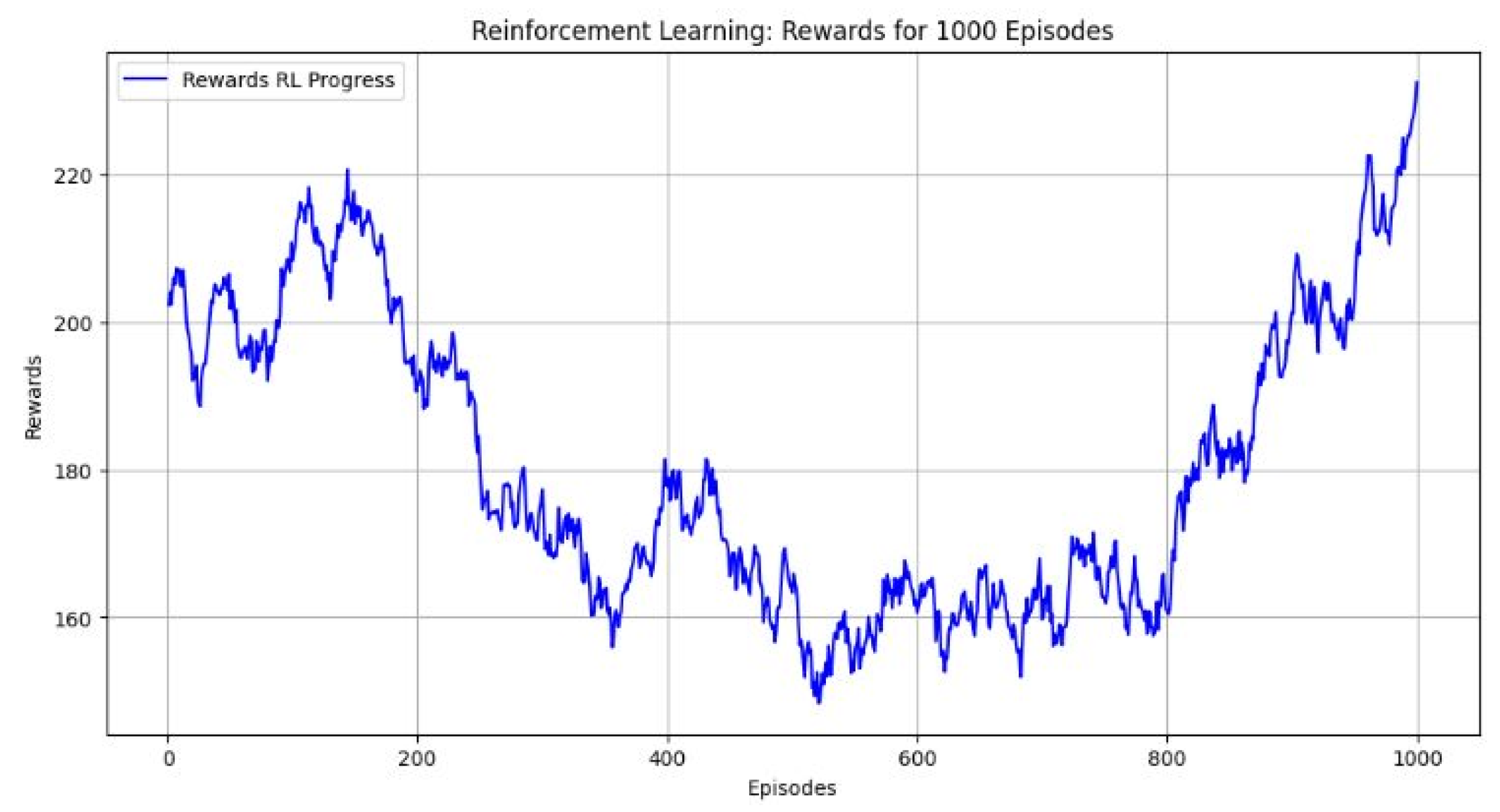 [+1, −1] | If the model moves to a grid with optimal temperature (20–30 °C), reward +1. Otherwise, reward −1. |