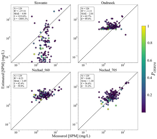 - Subirade, C.; Jamet, C.; Tran, M.D.; Vantrepotte, V.; Han, B. Evaluation of Twelve Algorithms to Estimate Suspended Particulate Matter from OLCI over Contrasted Coastal Waters. Opt. Express 2024, 32, 45719–45744. [Google Scholar] [CrossRef]