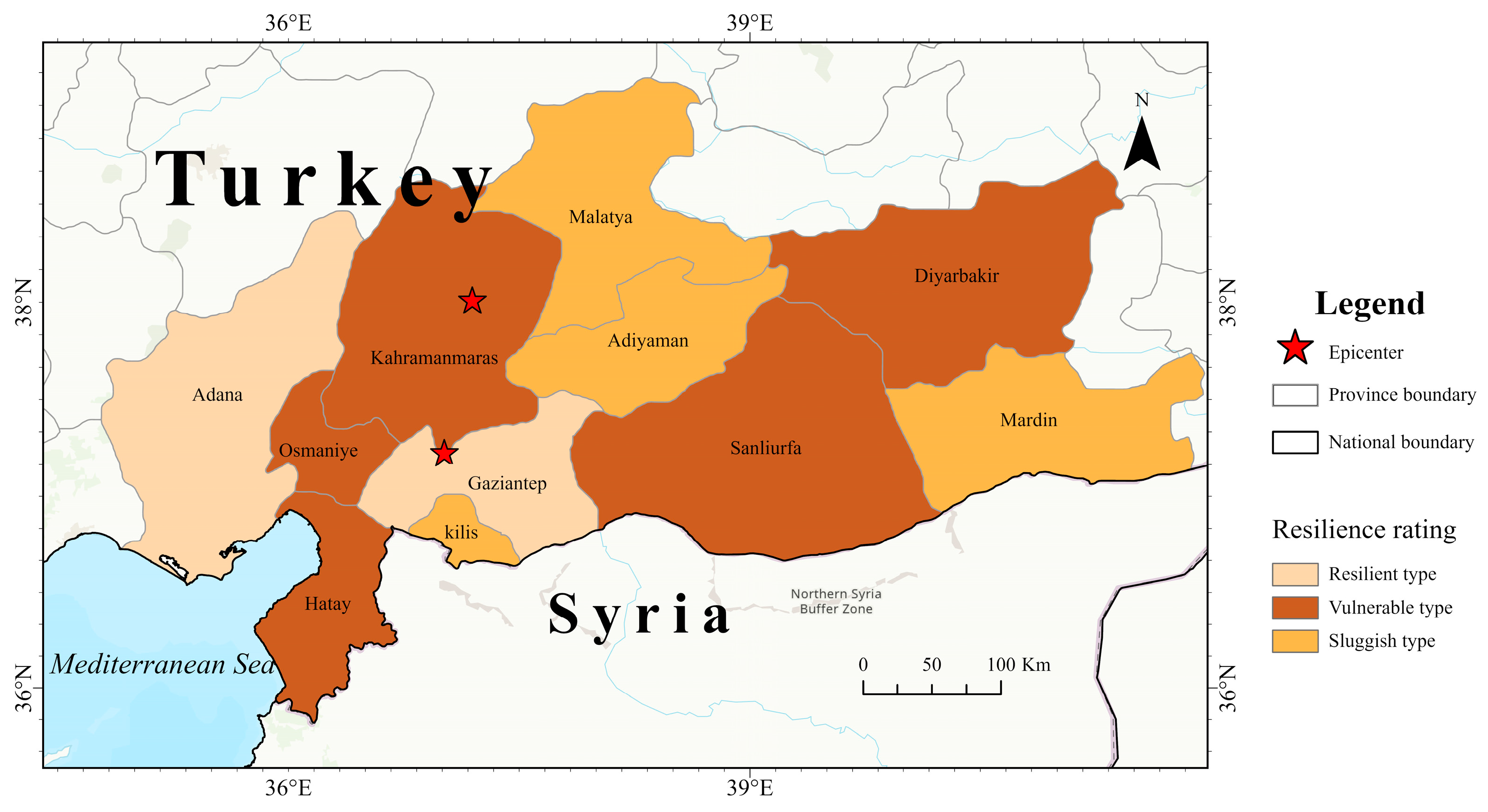 - Liu, W.; Zhou, J.; Li, X.; Zheng, H.; Liu, Y. Urban resilience assessment and its spatial correlation from the multidimensional perspective: A case study of four provinces in North-South Seismic Belt, China. Sustain. Cities Soc. 2024, 101, 105109. [Google Scholar] [CrossRef]